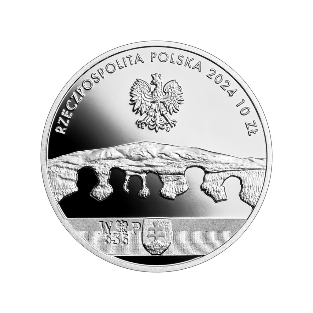at the top, the image of the Eagle established as the state emblem of the Republic of Poland; below the Eagle, on the right, the Mint mark: m / w. Above the Eagle, along the rim, the semi-circular inscription: RZECZPOSPOLITA POLSKA (Republic of Poland) 2024 10 ZŁ. Below the Eagle, Babia Góra seen from the village of Jabłonka; partly against its background, an outline of the busts of six people; at the bottom, the armband with the Slovak coat of arms worn by Home Army soldiers of the “Slovak” 535th platoon fighting in the Warsaw Uprising.