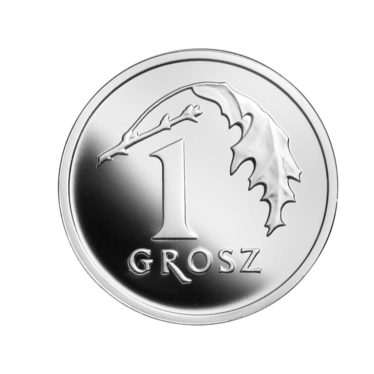 Awers wspólny dla: 1 gr, 2 gr, 5 gr, 10 gr, 20 gr, 50 gr i 1 zł: